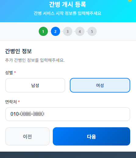 간병 대상 환자의 정보를 입력합니다. 빈칸만 정확하게 채우시면 됩니다.